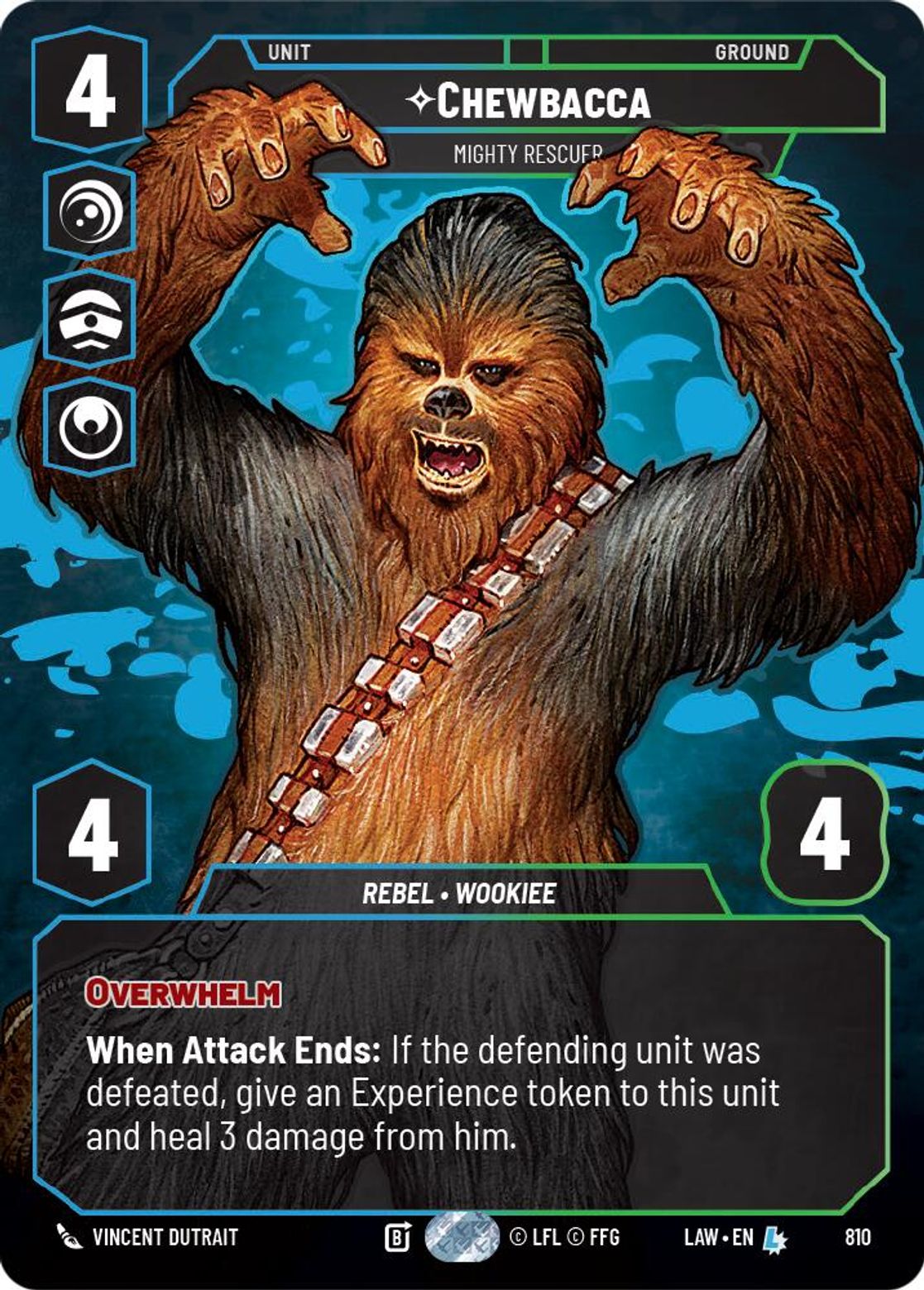 Overwhelm When Attack Ends: If the defending unit was defeated, give an Experience token to this unit and heal 3 damage from him.