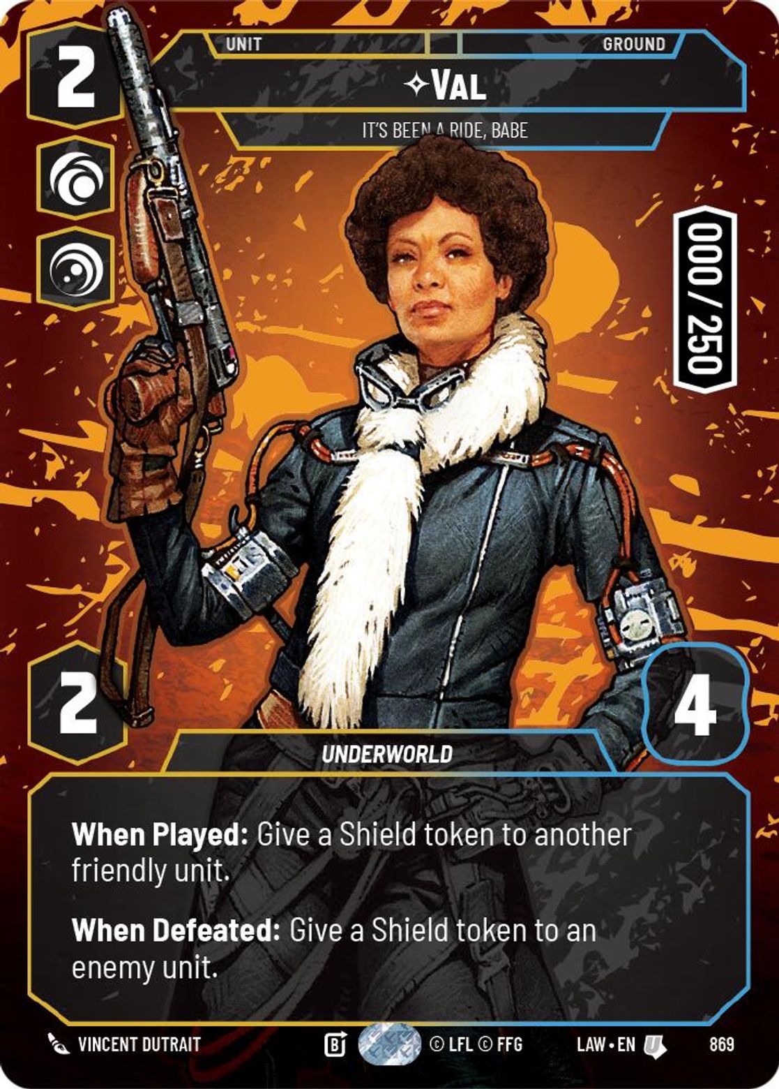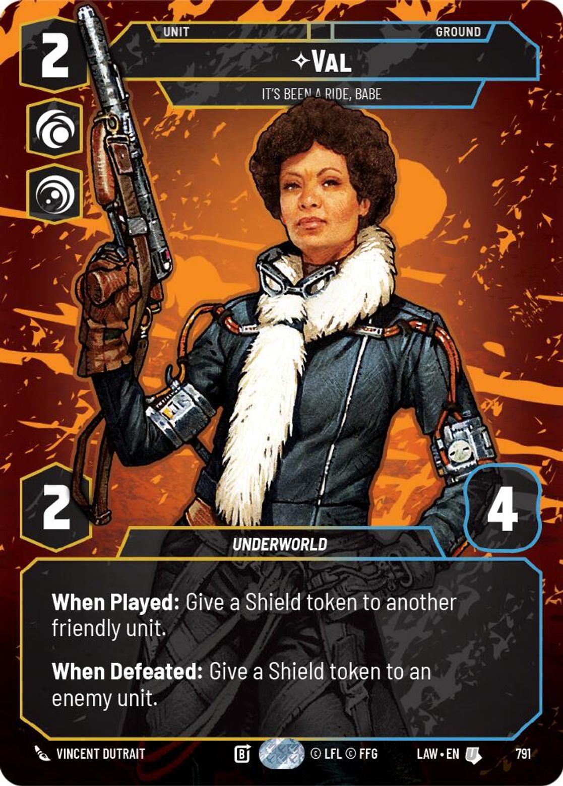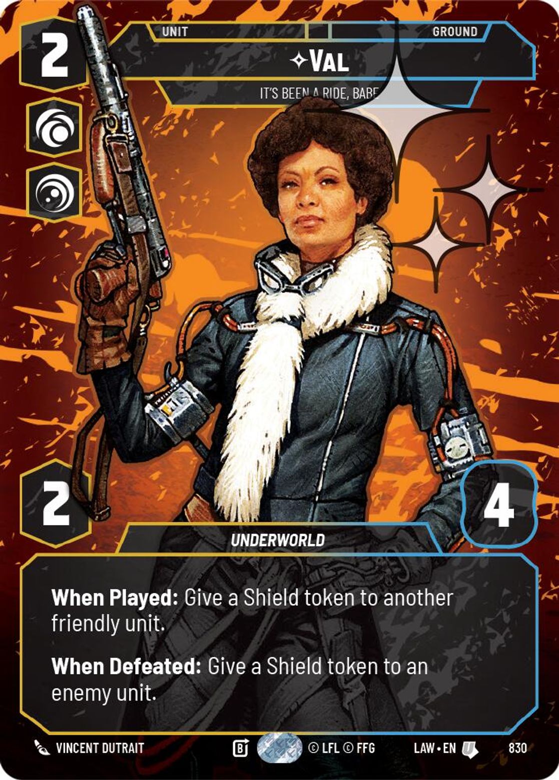 When Played: Give a Shield token to another friendly unit.